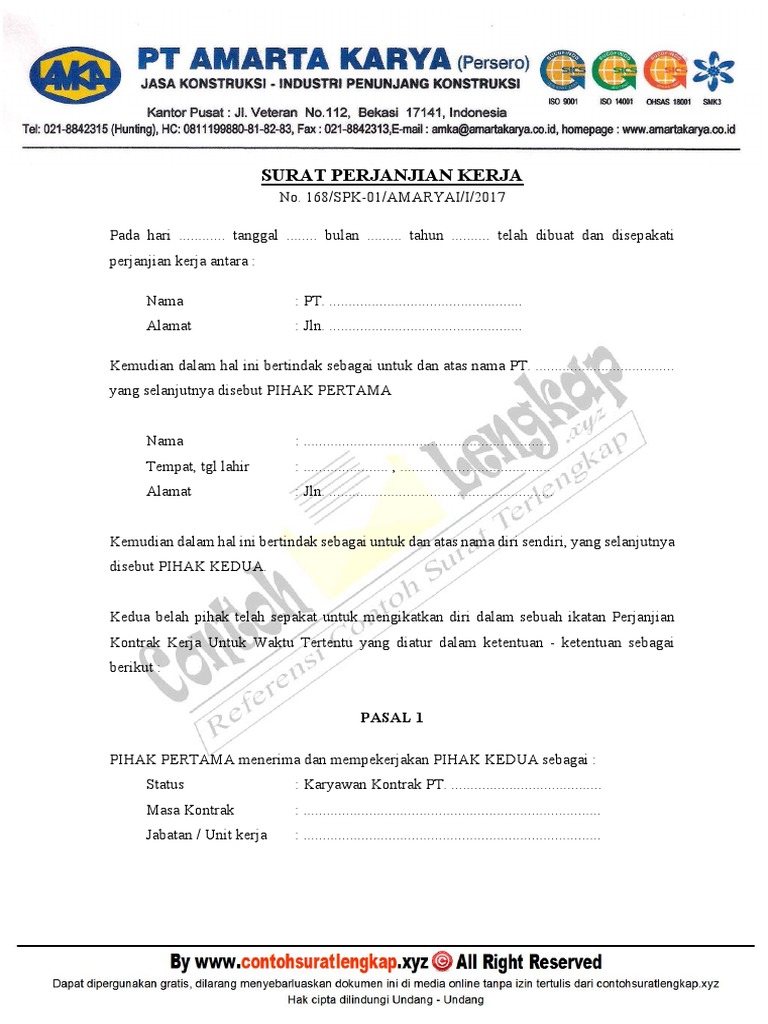Contoh surat kontrak kerja yang sering diterapkan di indonesia adalah perjanjian kerja waktu tertentu (pkwt) dan perjanjian poin penting dalam contoh surat kontrak kerja adalah hak dan kewajiban perusahaan dan pekerja surat lanjutan kontrak. Contoh surat lamaran kerja yang baik dan benar selalu menjadi solusi kamu yang ingin melamar pekerjaan disuatu perusahaan atau instansi pemerintah.
